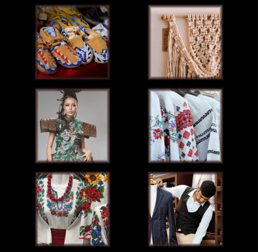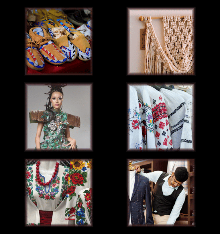 Ropa, bolsos y accesorios intervenidos por artistas. Productos naturales de uso diario y artículos de hogar.